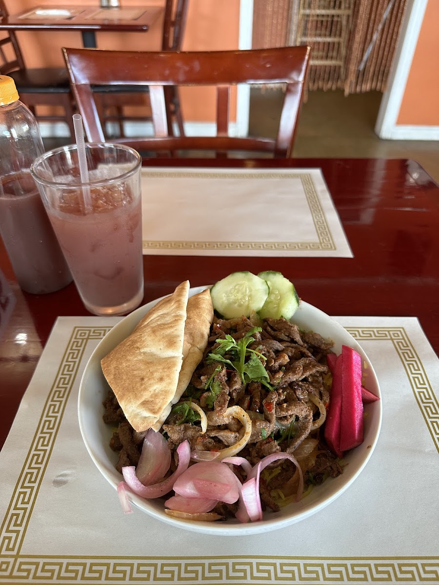 The menu leans heavily into Middle Eastern and Mediterranean comfort food. Think falafel with a crisp exterior and soft center, shawarma shaved straight from the spit, and hummus that’s smooth enough to scoop without resistance. One visit that stands out was a busy Friday night when the dining room was packed, yet the kitchen kept plates moving without cutting corners. Watching the staff assemble platters-fresh pita warmed to order, salads chopped finely, proteins seasoned evenly-gives you a clear picture of a process refined through repetition, not shortcuts.